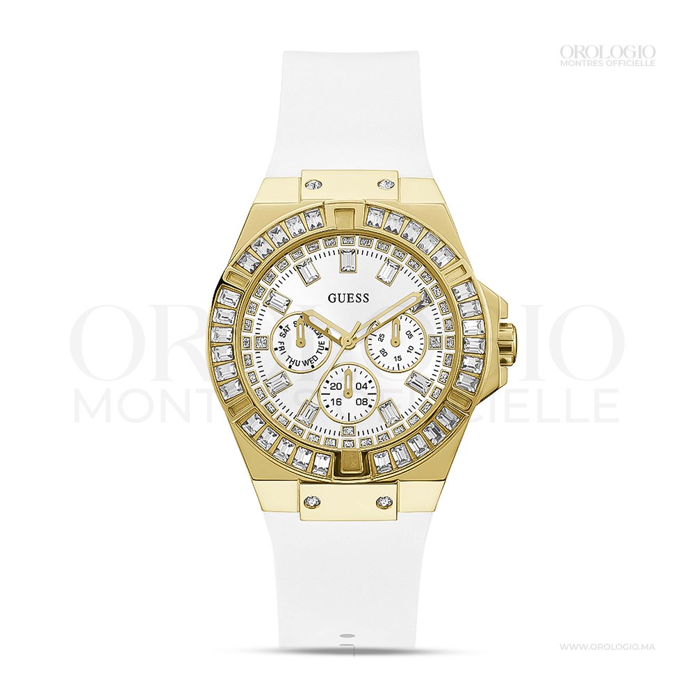 Découvrez notre collection de montres GUESS Venus Crystal de Guess, où le design contemporain rencontre une fonctionnalité élégante. Chaque montre combine style et précision, offrant un accessoire à la fois tendance et pratique. Par exemple, nos modèles vont des styles épurés et minimalistes aux designs audacieux et accrocheurs, afin de s’adapter à toutes les personnalités et à toutes les occasions. Les montres Guess utilisent des matériaux de haute qualité comme l’acier inoxydable, le cuir et des accents en cristal. Ainsi, elles garantissent durabilité, confort et un style raffiné.